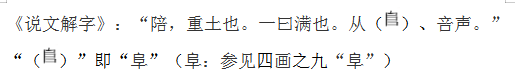 阜、咅两范式叠加:犹加之如重土山丘一般伴随者是陪字之范式。