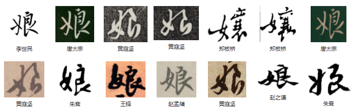 异体字“孃”简化为“娘”是根据古人(异体字、同旁字)书法省笔规范简化。