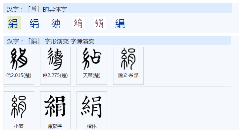 《说文解字》:“絹, 缯如麦。从糸、肙声。”。