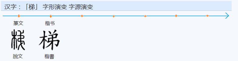 《说文解字》:“梯,木阶也。从木、弟声。”。