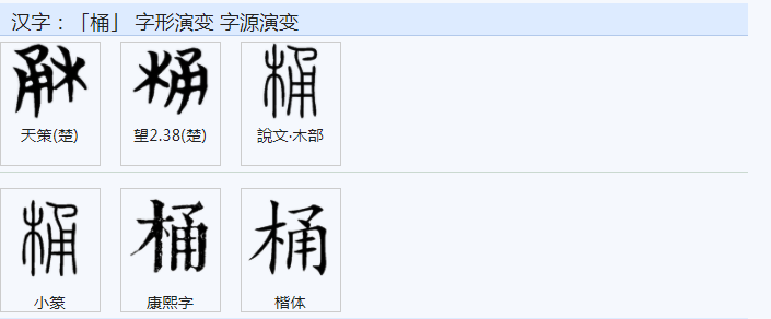 《说文解字》:“桶,木方,受六升。从木、甬声。”