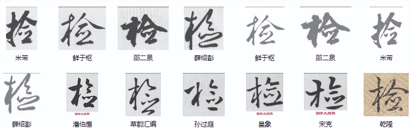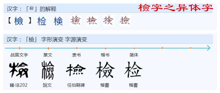 繁体字“檢”简化为“检”是根据古人(异体字、同旁字)书法省笔规范简化。