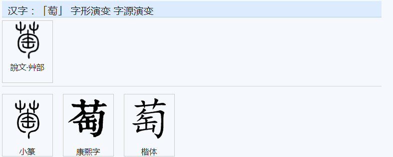 《说文解字》:“萄,艸也。从艸、匋声。”。