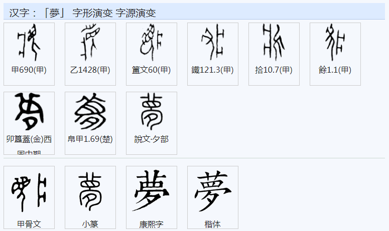 《说文解字》:“夢,不明也。从夕,瞢省声。”