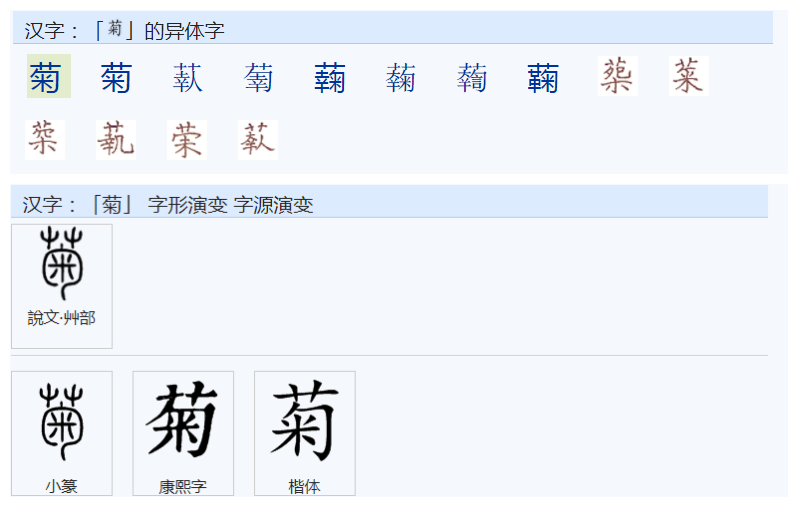《说文解字》:“菊,大菊,蘧麦。从艸、匊声。”
