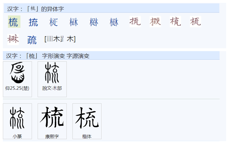 《说文解字》:“梳,理发也。从木,疏省声。”