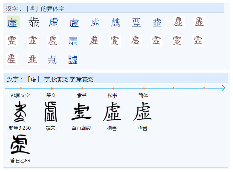 丘、虍两范式叠加:大丘空旷不实犹道所从接物者是虚字之范式。