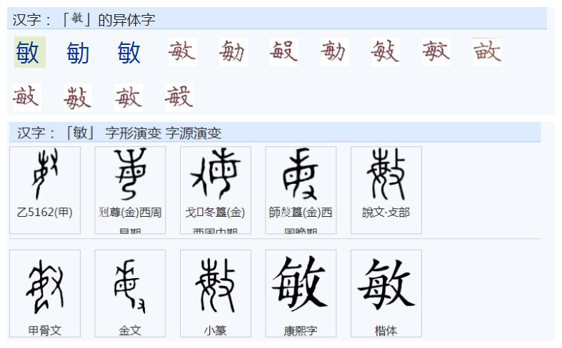 攴、每两范式叠加:疾速聪慧而灵巧犹小击而加快有才之行动者是敏字之范式。
