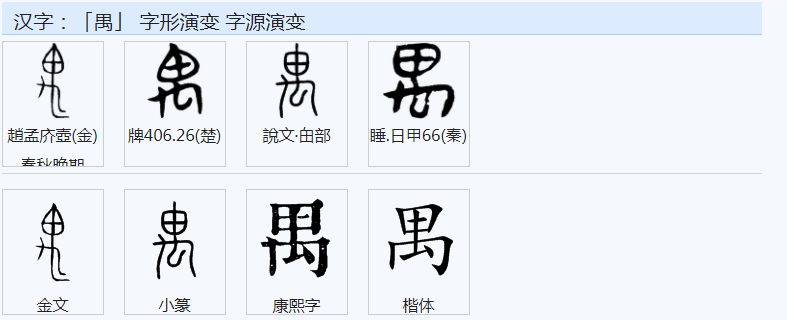 《说文解字》:“禺,母猴属。头似鬼。从甶、从禸。”。