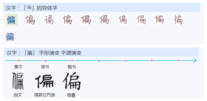 《说文解字》:“偏,颇也。从人、扁声。”。