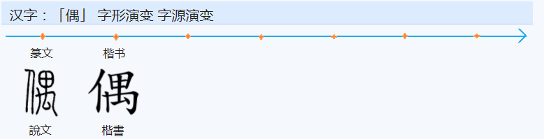 《说文解字》:“偶,桐人也。从人、禺声。”。