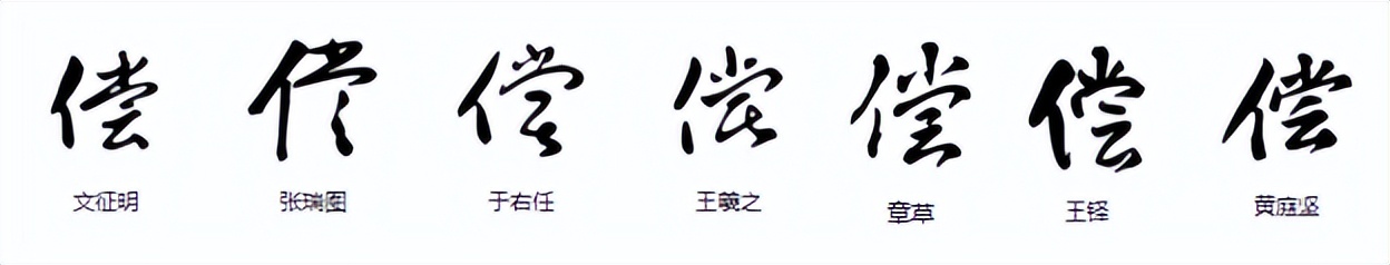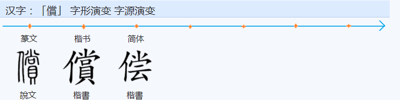 异体字“償”简化为“偿”是根据古人(异体字、同旁字)书法省笔规范简化。