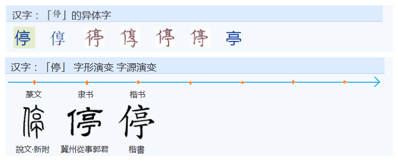 人、亭两范式叠加:中止犹人定于所在者是停字之范式。