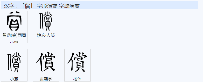 人、賞两范式叠加:酬报而赏之犹以相当归还而复之者是償字之范式。