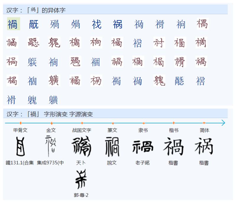 示、呙两范式叠加:犹神不福来不由我而遭受之灾殃患害苦难凶荒者是禍字之范式。
