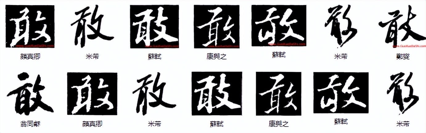 )”简化为“敢”是根据古人(异体字、同旁字)书法省笔规范简化。