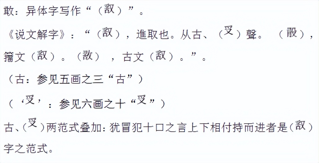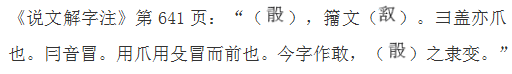 爪、殳、“冒省”三范式叠加:冒着爪与殳而前犹覆头蒙眼者是敢字之范式。