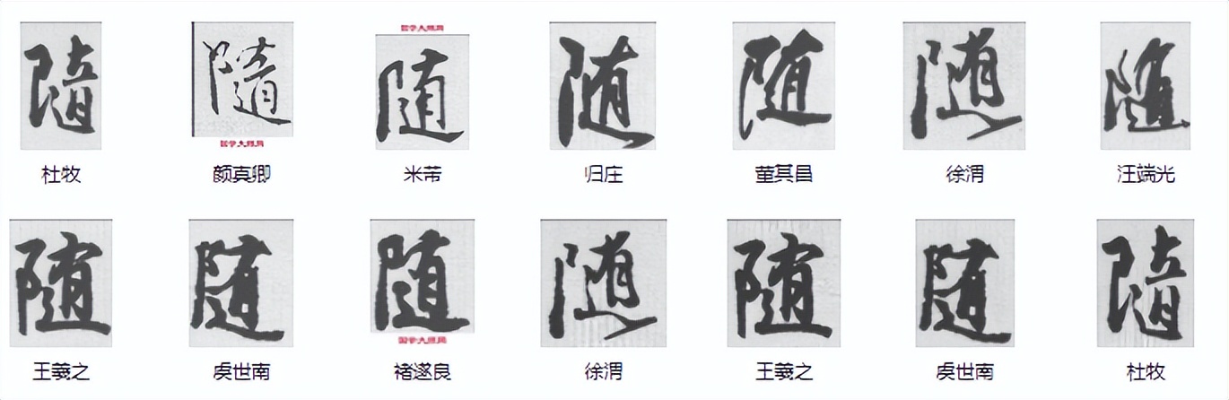 繁体字“隨”简化为“随”是根据古人(异体字、同旁字)书法省笔规范简化。