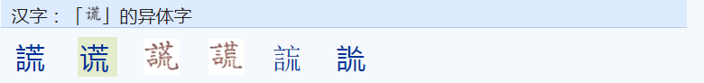 言、荒两范式叠加:假话犹言不实漫无边际而虚构者是謊字之范式。