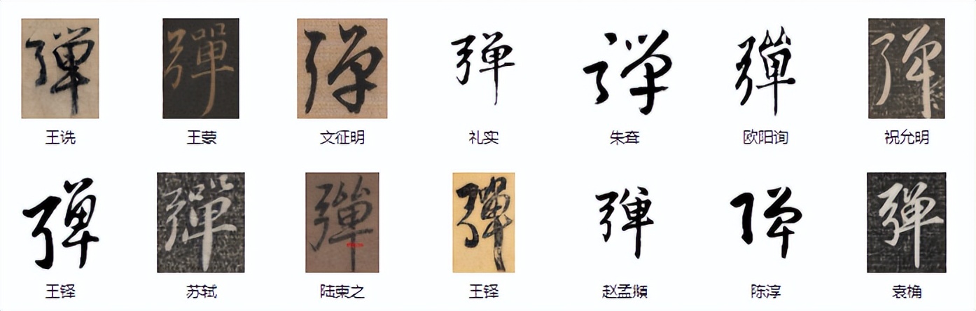 繁体字“彈”简化为“弹”是根据古人(异体字、同旁字)书法省笔规范简化。