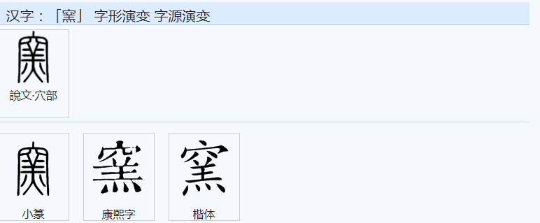 《说文解字》:“窯,烧瓦竈也。从穴、羔声。”。