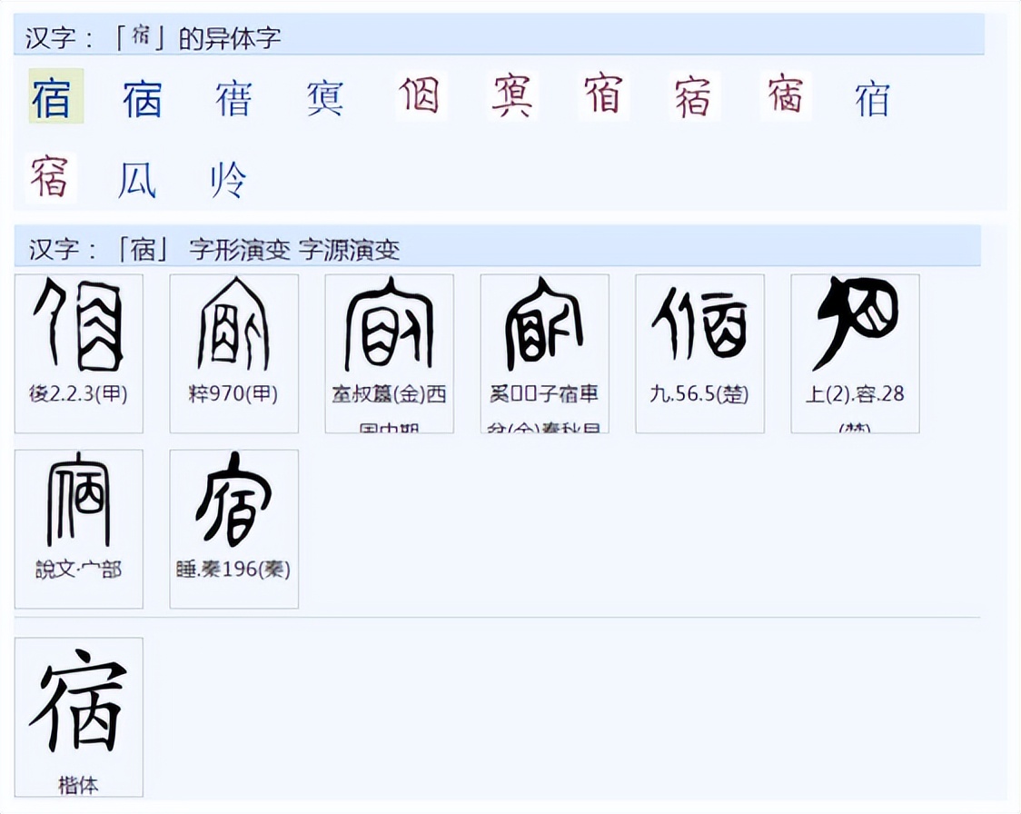 繁体字“”简化为“宿”是根据古人(异体字、同旁字)书法省笔规范简化。