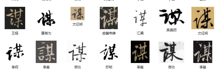 繁体字“謀”简化为“谋”是根据古人(异体字、同旁字)书法省笔规范简化。