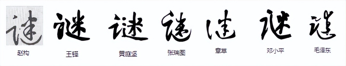 繁体字“謎”简化为“谜”是根据古人(异体字、同旁字)书法省笔规范简化。