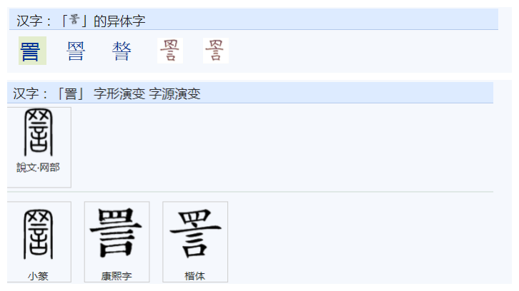 《说文解字》:“詈,骂也。从网、从言。网罪人。”。