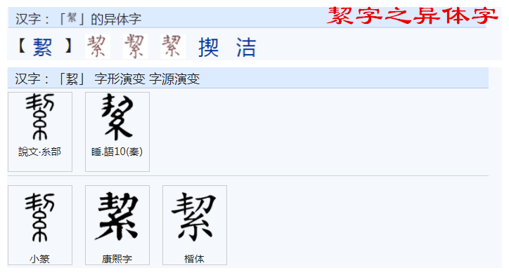 《说文解字》:“黹,箴缕所紩衣。从,丵省。凡黹之属皆从黹。”。