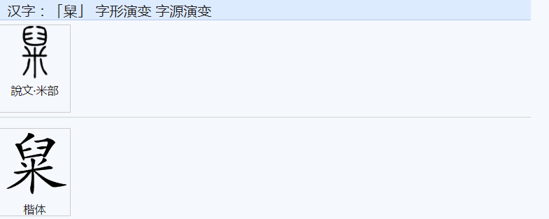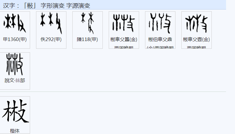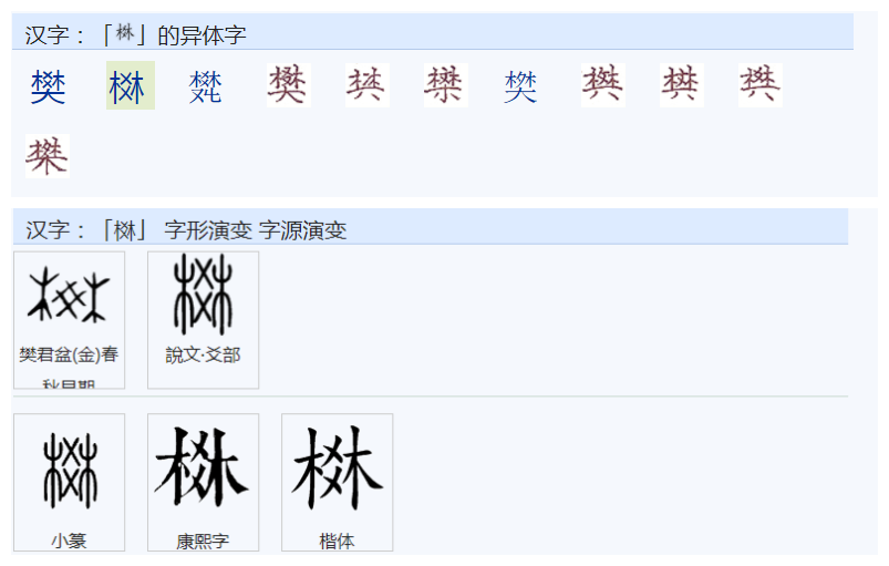 《说文解字》:“棥,藩也。从爻、从林。《诗》曰:‘营营青蝇,止于棥。’。”。