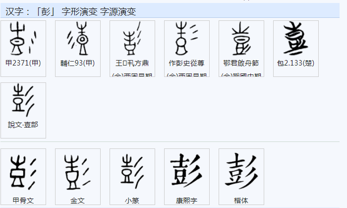 《说文解字》:“彭,鼓声也。从壴、彡声”。