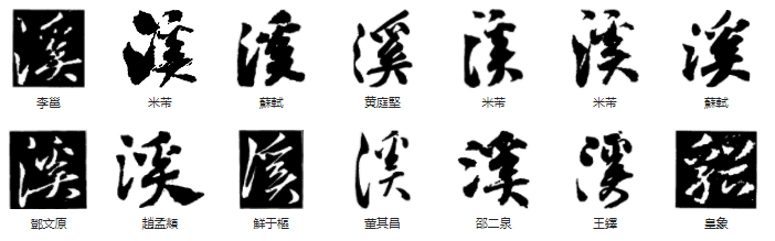 异体字“谿”简化为“溪”是根据古人(异体字、同旁字)书法省笔规范简化。