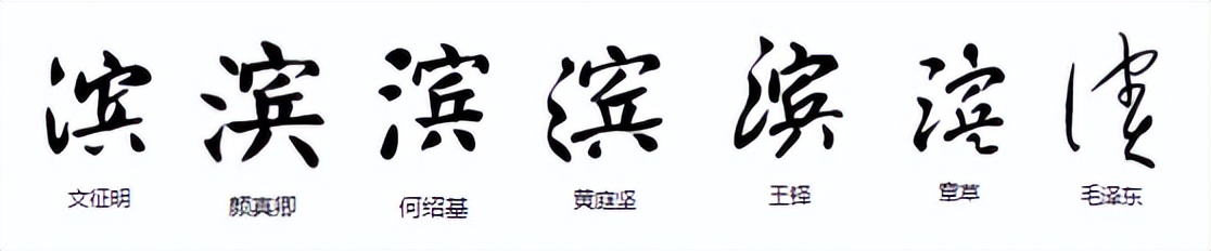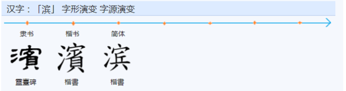 繁体字“濱”简化为“滨”是根据古人(异体字、同旁字)书法省笔规范简化。