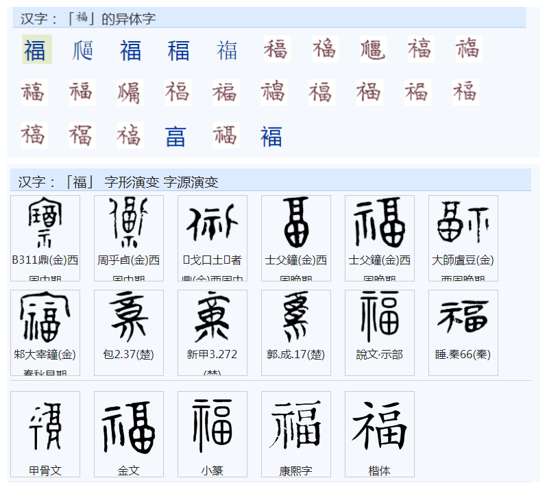 示、畐两范式叠加:犹凡富贵寿考康健安宁吉庆如意全备圆满者是福字之范式。