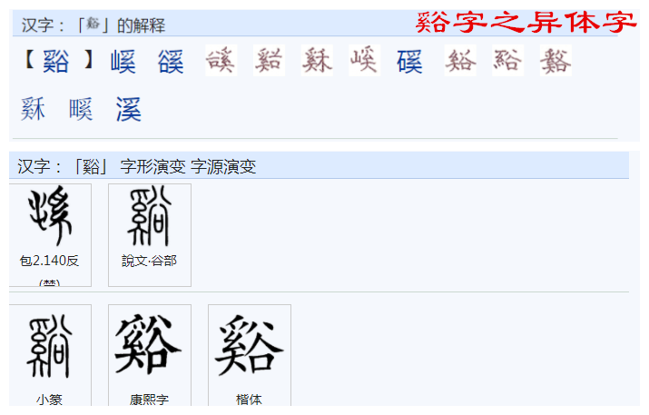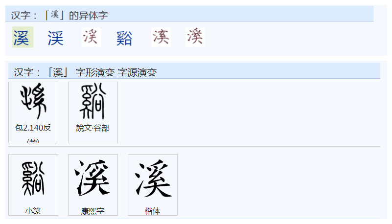 《说文解字》:“谿,山渎无所通者。从谷、奚声。”。