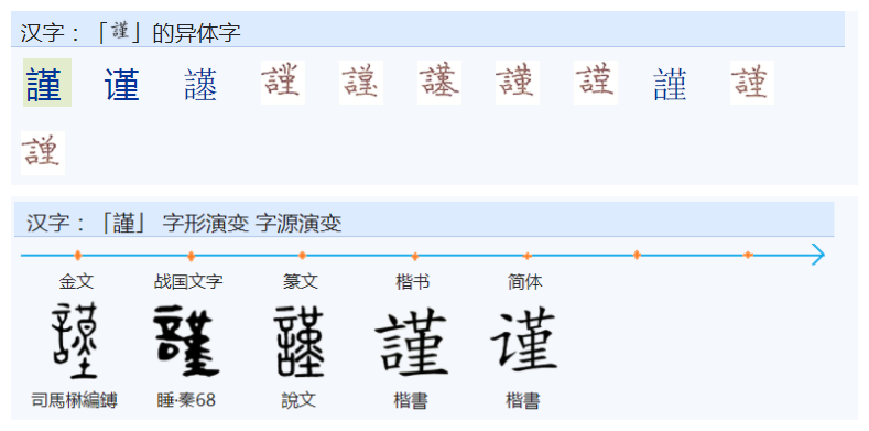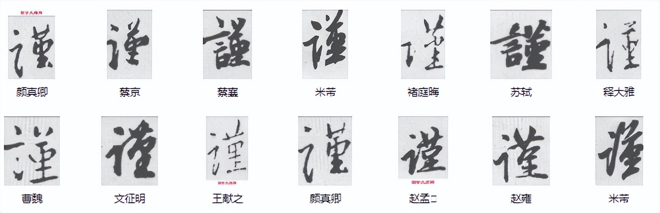 言、堇两范式叠加:犹恭敬重视严格慎行礼法无越思而仔细小心者是謹字之范式。