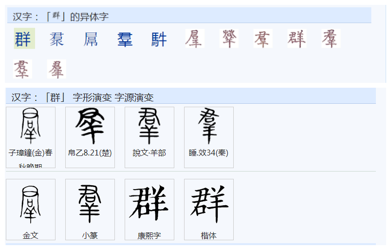羊、君两范式叠加:羊聚集在一起犹同类相聚众多成集体者是群字之范式。