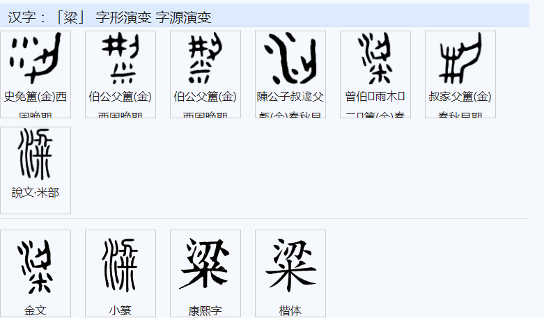 《说文解字》:“粱,米名也。从米,梁省声。”。
