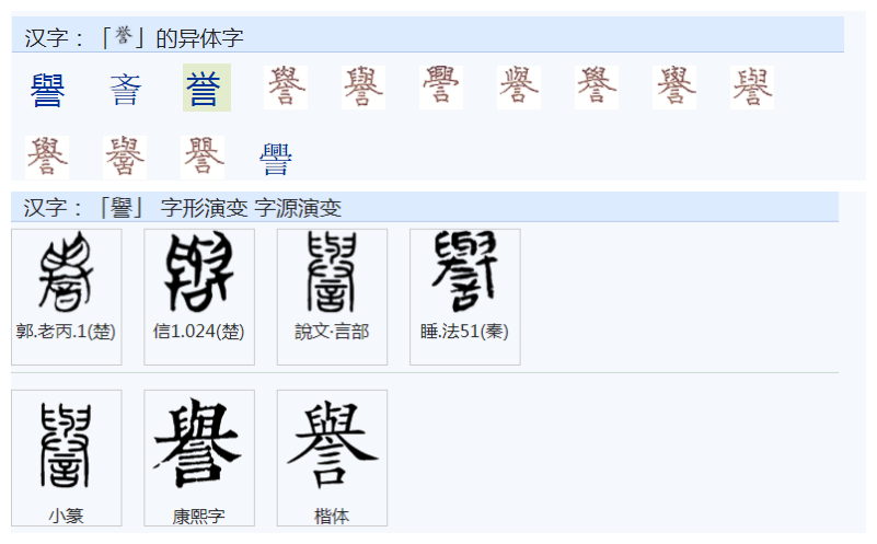 言、與两范式叠加:赞美称扬之名声犹扬人之善而过其实者是譽字之范式。