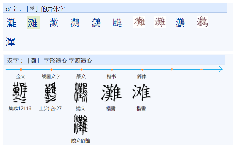 )”简化为“滩”是根据古人(异体字、同旁字)书法省笔规范简化。