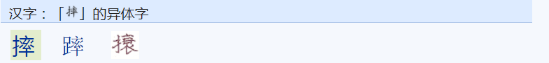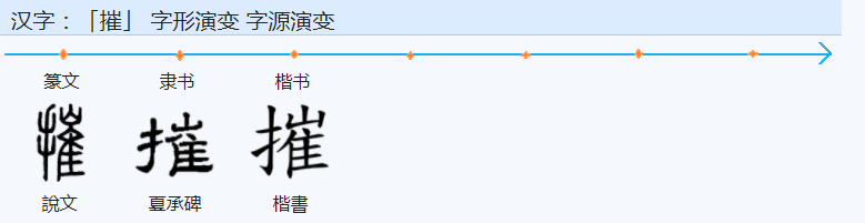 《说文解字》:“摧,挤也。从手、崔声。一曰挏也,一曰折也。”。