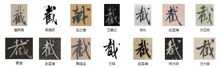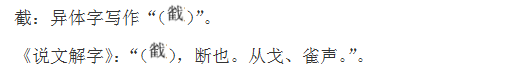 )”简化为“截”是根据古人(异体字、同旁字)书法省笔规范简化。