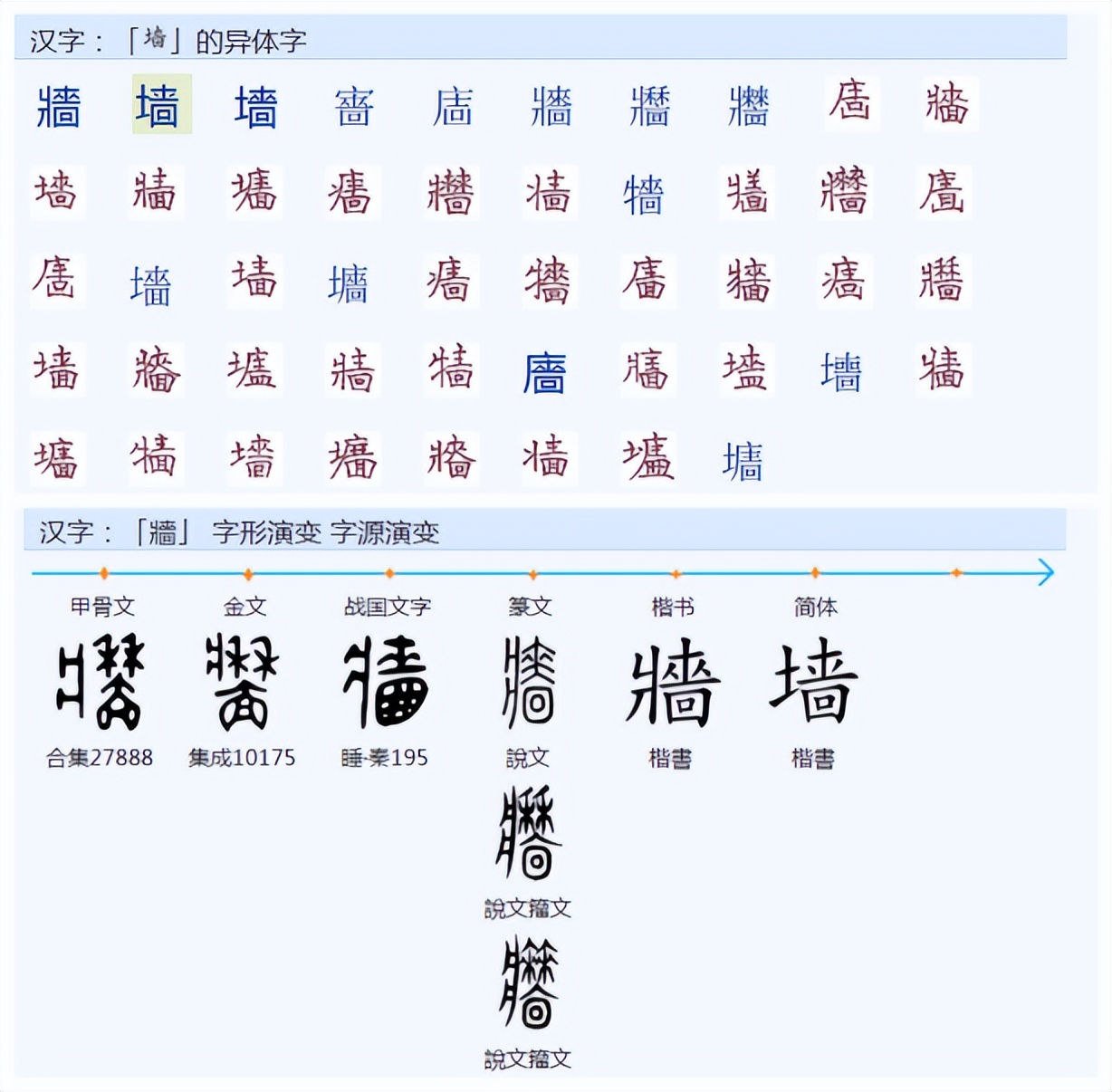异体字“牆”简化为“墙”是根据古人(异体字、同旁字)书法省笔规范简化。