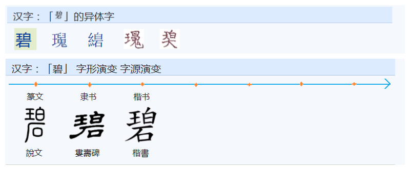 《说文解字》:“碧,石之靑美者。从玉、石,白声。”。