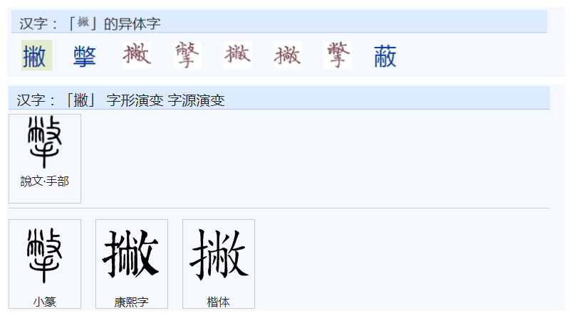 手、敝两范式叠加:犹以手在其表面碰触拂拭甩抛蔽弃者是撆字之范式。
