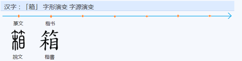 《说文解字》:“箱,大车牝服也。从竹、相声。”。