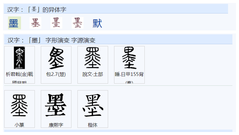 《说文解字》:“墨,书墨也。从土、从黑,黑亦声。”