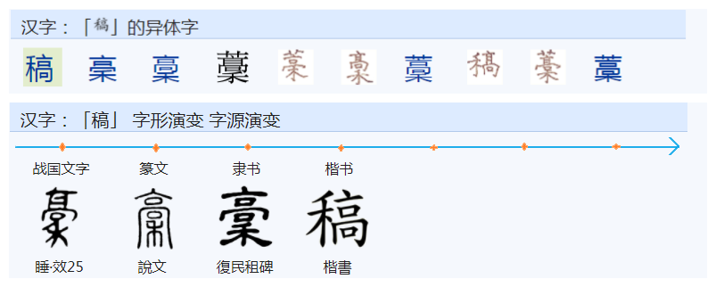 禾、高两范式叠加:未完成或已完成的文字、图画犹稻草等植物之茎秆者是稿字之范式。