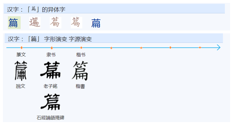竹、扁两范式叠加:著于简牍犹首尾完成之文章或诗词者是篇字之范式。